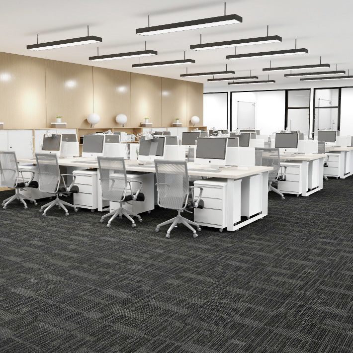 Moquette de bureau en nylon technique écologique, fabriquée à partir de nylon recyclable, avec résistance aux taches et à l'usure, convient aux espaces de bureau modernes axés sur la durabilité, créant un environnement de bureau vert et à faible émission de carbone pour les entreprises. |