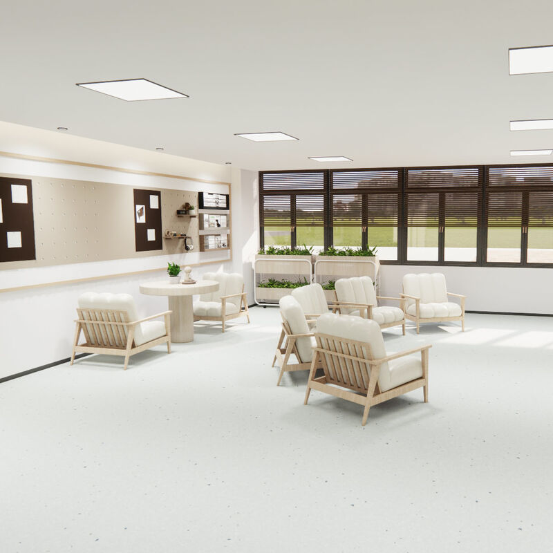Relle  Hétérogène le revêtement de sol présente des motifs uniques, de la simplicité, du confort et des performances exceptionnelles. Sa très forte résistance chimique en fait le premier choix pour les hôpitaux.