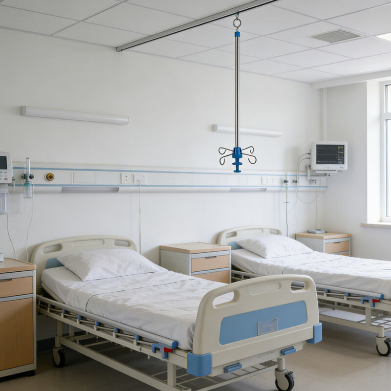 Made of 304 stainless steel for sturdiness and corrosion resistance. Telescopic design flexibly adapts to bed heights, with 4 hooks to hold multiple IV bags. Easy to install, stable and durable—ideal for efficient hospital ward care.